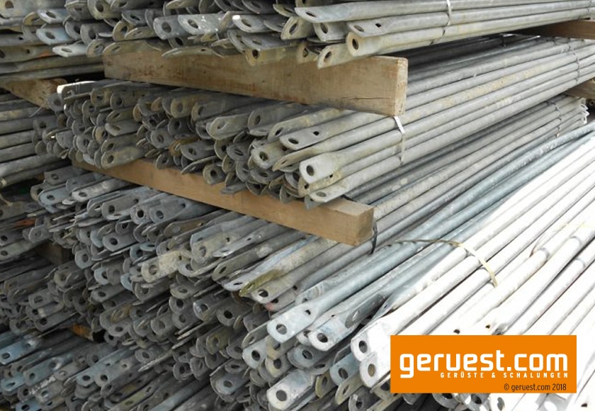 Auch gebrauchte Einzelteile wie Gerüstdurchstiege, Konsolen, Geländer, Kupplungen, Rohre, Gitterträger, Gerüstbohlen aus Stahl, Holz, und vieles mehr