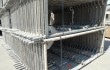 Layher Blitz Fassadengerüst in Feldlänge 2,57m, bestehend aus vier Einzelflächen, mit kompletter Geländerausstattung und Zubehörteilen.