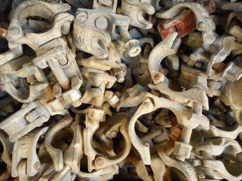 50 Stück gebrauchte Drehkupplungen zum Verbinden von Rohren/Rahmen/Stielen usw. mit 48,3 mm Durchmesser. Passend in alle Gerüstsysteme (Alfix, Assco, Baumann, Hünnebeck, Layher, MJ, Plettac, Rux u.v.m. – auch für Fahrgerüste geeignet). Es können damit Stahl- und auch Alu-Gerüststangen mit Standard-Durchmesser 48,3 mm in beliebigen Winkeln gekuppelt werden.