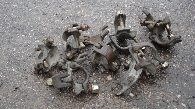 50 Stück gebrauchte Normalkupplungen („feste“ Kupplungen) zum Herstellen von 90°-Winkeln an Rohren/Rahmen/Stielen usw. mit 48,3 mm Durchmesser. Passend für alle Gerüstsysteme (Alfix, Assco, Baumann, Hünnebeck, Layher, MJ, Plettac, Rux u.v.m. – auch für Fahrgerüste geeignet). Mit Normalkupplungen können Stahl- und auch Alu-Stangen mit Standard-Durchmesser 48,3 mm gekuppelt werden. Ideal im Einsatz mit Ankern für das Verkankern von Gerüsten am Gebäude.