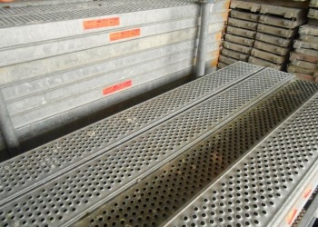 10 gebrauchte 0,19er U-Stahlböden von Layher in 3,07er  Feldlänge – für den Einsatz als Zwischenboden auf Podesten oder Konsolen. Auch andere Mengen und Längen machbar.